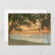"A hauntingly beautiful depiction of a Southern sunset as envisioned through the eyes of H.P. Lovecraft. The postcard captures a surreal landscape bathed in the deep oranges, purples, and fiery reds of twilight. The setting sun casts long shadows across a winding, desolate road flanked by eerie, gnarled trees. Their twisted branches stretch skyward, as if clawing at the heavens. In the distance, the faint outline of a Gothic mansion looms, shrouded in mist, evoking a sense of cosmic mystery. The sky above seems almost alive, with swirling clouds hinting at otherworldly forces. This postcard perfectly encapsulates the uncanny beauty and unsettling atmosphere that defines Lovecraft's world."