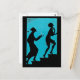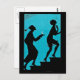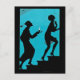 This vintage black silhouette is set against a vibrant blue background. It has a man in a nightcap with a candle and a 1920's style woman climbing a staircase. There are spiderwebs and a tiny spider hanging in front of the woman's face. See my store for matching products with this design.