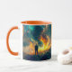 This image was created while thinking of the simulation hypothesis. I wondered what it might look like for a creator of a simulated universe to be outside of the universe, standing on it, rather than in it. This mug is customisable. You can change the font, colour, placement, etc. Feel free to contact me with any questions or requests. Thanks.