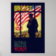 This vintage World War One poster features a man looking through a window as troops march past and an American flag waves. It reads, "Enlist, On which side of the window are you?"