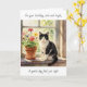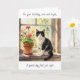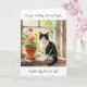 A sweet birthday card with a sweet cat theme with an illustration of a black and white cat sitting on a flower filled window sill. Inside is a sweet poem wishing someone a relaxing day.
