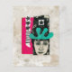 A collage consisting of a whimsical character with a face pencil sketched in black and white, with a turquoise crown shaped object above her head. Bright pink and black elements with floral and geometric patterns flank the central face image, set against a textured beige background.