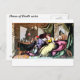 Once the Old Fool has Drank his Wine postcard : This is a vintage art/ Illistration from: The English Dance of Death book published 1816,art by Thomas Rowlandson, poetry, by William Combe circa 1815. Here you have the man and woman of the house sitting in the living room, he is much older than her and is drinking, her younger lover awaits outside the window for the dink to put him to sleep as death pours a draught into the cup from above. Dance of Death, or Danse Macabre art: you see Death approach people of all stations and walks of life, reaffirming that Death is the great leveler/equalizer. They were produced as an artistic genre of religious works from the 1400s thru the 1800s, period to remind people of the fragility of their lives and how vain are the glories/pleasures of earthly life.