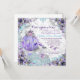 Once upon a time fairy tale birthday party invitation with beautiful purple princess carriage on a gorgeous teal blue and purple floral sparkle background. This elegant and fancy fairy tale princess birthday party invitation is easily customised for your event by simply adding your details in the font style and colour and wording of your choice. This is a printed design with no real ribbons, jewels, glitter, etc.