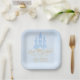Boy fairytale "Once Upon A Time" baby shower paper plates for a boy or girl in blue and gold, with beautiful typographic flourishes. Script text reads Once Upon A Time" in gold, with a magical castle.
