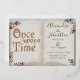 This magical and enchanting save the save for the wedding invitation features a fairy tale storybook theme. The background is a vintage style open book with glitter accents around the border. The fairytale phrase "Once upon a Time" is printed on the left page in a whimsical, real gold foil font. The names of the newly engaged couple are printed on the right, along with the wedding date and extra text which you can personalise with your own.