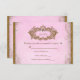 Beautiful pink and gold glitter fairy tale princess once upon a time birthday party RSVP response card. You can easily customise this gorgeous pink and gold fairy tale princess RSVP response card for your event by simply adding your details in the font style and colour, and wording you prefer. All designs are printed graphics with no real jewels, bows, glitter, etc.