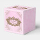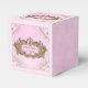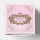 Once upon a time fairy tale princess birthday party and baby shower favour boxes with fancy gold glitter crown on a beautiful pink and gold lace swirl background. You can add text to personalise.