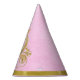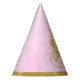Princess birthday party hats with pretty royal gold princess carriage on a pretty pink and gold background. You can personalise with the text of your choice in the font style and colour you prefer.