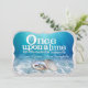 Under the sea fairytale wedding theme with diamond wedding rings displayed in a pearl clam shell. Magical gem sea shells and star fish bride groom amidst a sparkling sand castle. Love, laughter and happily ever after bookmark this fun wedding invitation you can customise for your very special day. Change the "Once upon a time story to match your own love story.