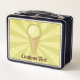This is a standard metal lunchbox that appears to work just fine. We designed this box ourselves with an uploaded photo and custom text on the front and back. It looks absolutely beautiful except the front of the lunchbox is not centered like it shows in the photo. The print borders don't align with the inset flat part of the box where the preview photo online showed it perfectly centered in there. The back looks nice and centered though.
