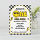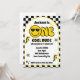 Celebrate your little one's big milestone with this groovy 1st birthday invitation! Featuring a cheerful yellow happy face against a clean white background, this design perfectly balances a modern vibe with a retro twist. The bold black and white checkered background adds a playful yet stylish touch, giving off a cool, 70s-inspired feel.