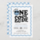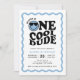 One cool dude wavy blue happy face boy first birthday invitation.