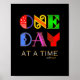 “One Day at a Time” means to live in the present, and not worry about tomorrow. Minute by minute, hour by hour, step by step – one day at a time. It’s a favorite slogan used in recovery and 12 step programs … suggesting we gradually heal and become free of our addictions ‘one day at a time’. Design: Colorful ‘One Day at a Time’ text.