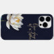 One day at a time phone case with water lily on a black background.