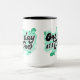15oz ceramic two toned hot beverage mug, perfect for coffee or tea. White with black interior and handle featuring the One Day at a Time teal splash design.