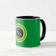 One Earth 11oz Combo Mug. Symbol represents 1 (one) Earth. Blue = Earth as seen from space appears blue. Black surround = represents space, the void in which planet Earth exists. Green = Earths biodiversity which refers to all the variety of life that can be found on Earth (plants, animals, fungi and micro-organisms) as well as to the communities that they form and the habitats in which they live. Lime green and red = All Earth’s peoples (one [1] humanity).