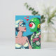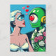 One Eyed Alien Woman and Green Robot in Love Postcard