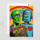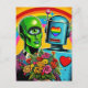 A one eyed green alien and a robot have fallen in love and hold the wedding bouquet AI generated art