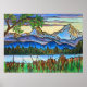 Here is a beautiful canvas print of my original landscape painting, depicting lovely mountains, a lake, and some flowers...created in my unique vintage stained glass style...I hope you like it!