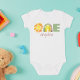 What fun, you're ONE! Celebrate your little one's first birthday with a customised bodysuit featuring a watercolor sun and rainbow spelling out the number "ONE" and your child's name under it. Simply personalise with your own baby's name! Colours are gender neutral, making it great for all kids. Font colours can also be changed within the editor.