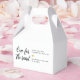 "One for the Road" wedding snack favour box with customisable text. The design features a mix of handwriting font and modern typography with a cute little gold heart. Personalise the design by replacing the sample names and wedding date.