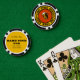 Very cool chips to give your customers! Change the text fields (on the back side) to what you want. You can also change each font and its size and color by using the "Customize it" function, as well as add more text fields if you wish. You can also change (edit) the background color of the back side if you wish.