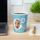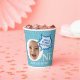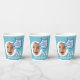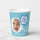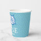 Funny Personalised Paper Cups for the first birthday featuring comic word balloons and simple blue stars.