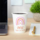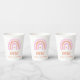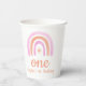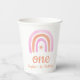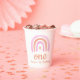 Our One Girl's first Birthday Party Paper Cups feature a cute pink and peach watercolor rainbow, with a matching rainbow pattern on the back. There is space for you to add the name to your toddler's cute rainbow party. Perfect for a girl´s first birthday!