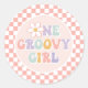 One Groovy girl Pink Daisy Chequered Classic Round Sticker