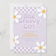 One Groovy Girl Retro Check Lilac Daisy Invitation