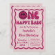 Retro Wavy Pink Wave Curve Modern One Happy Babe Girl 1st First Birthday Invitation. One Happy Babe Girl First Birthday Invitation.