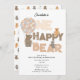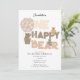 A beautiful hand drawn bear birthday invitation design. A cute "One happy bear" bear themed first birthday party invitation. A cute bear themed birthday invitation that can be customized to your details.