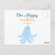 One happy blue octopus under the sea birthday postcard
