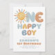One Happy Boy! A bright and colorful sun themed boys 1st birthday invitation in blue, orange and yellow. Available in other colors.