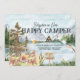 One Happy Camper first birthday invitation with watercolor camping scene. The design features a lakeside camp with tent, campfire, smores and mountain forest. Rustic and neat and everything sweet, this “One Happy Camper” First Birthday Party is a treat! One Happy Camper Birthday Party - an update on the traditional camping party. Fresh colours and watercolor elements set the tone for a darling first birthday!