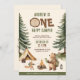 Celebrate your little adventurer with this One Happy Camper first birthday invitation. Featuring a charming woodland camping theme with trees, tent, campfire, and forest animals, this design is perfect for a boy’s 1st birthday party. Fully customizable with your child’s name, party details, and wording. Ideal for rustic, outdoor, or camping-themed birthday celebrations. Children's poem and illustration on the back. Printed or digital options available on Zazzle.