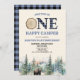 ONE Happy Camper Bear Blue 1st Birthday Party Invitation