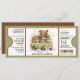 Make your little one's special day a memorable one with this unique and whimsical One Happy Camper First Birthday admit one ticket invitation! This invitation features a cute brown bear and moss green camper van with pine tree pattern on the backside.