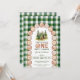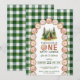 One Happy Camper Wood Slice Arch Green Plaid Invitation