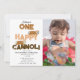 A beautiful hand drawn cannoli custom photo birthday invitation design. A cute "One happy cannoli" cannoli Italian dessert themed first birthday party invitation. A cute cannoli themed birthday invitation that can be customized to your details.
