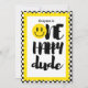 A Celebration of Joy and Laughter!Invite your friends and family to a first birthday celebration that's all smiles with the "One Happy Dude" design. The chequered border with yellow accents frames the fun emoji-filled design, where the text "One Happy Dude" stands out with a happy face as the O. Above it, your little one’s name is highlighted in playful text, making the invitation feel as special as the day itself. The back is perfect for customising all your party details, and the invitation ends with a warm, welcoming call to action. Thanks for considering this fun design!