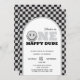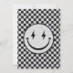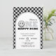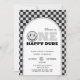 One Happy Dude Grey and Black Chequered Retro Happy Face First Birthday Invitation