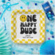 One happy dude, one cool dude first birthday party theme editable party supplies and stationery.