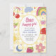One Happy Girl Retro Hand Drawn 1st Birthday Invitation