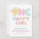 One Happy Girl! A bright and colorful sun themed girls 1st birthday invitation in pink, purple, green, yellow and blue. Available in other colors.