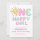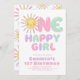 One Happy Girl Sun 1st Birthday Pink Green Invitation
