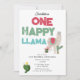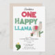 A beautiful watercolor llama and cactus birthday invitation design. A cute "One happy llama" themed first birthday party invitation. A beautiful watercolor llama and cactus themed birthday invitation that can be customized to your details.
