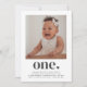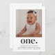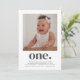 A modern 1st Birthday invitation featuring your own photo and the word 'one' with a heart underneath.