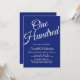 One Hundred Script Navy Blue 100th Birthday Party Invitation